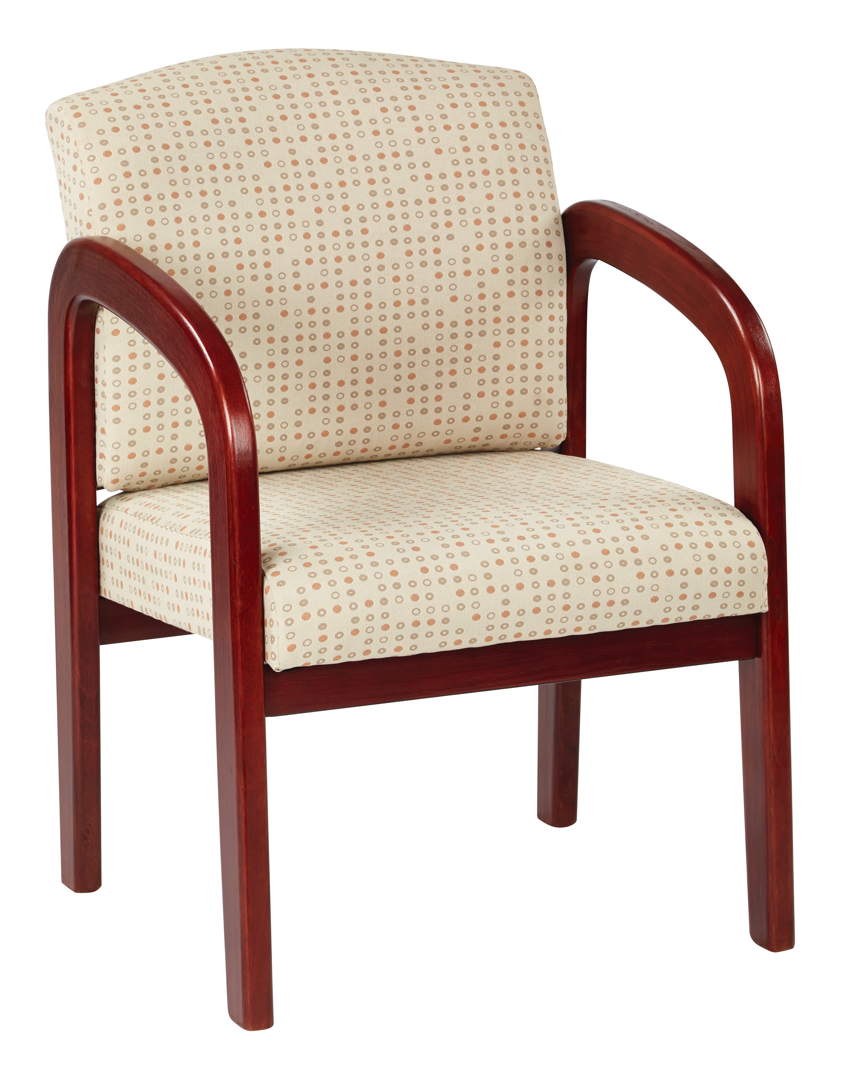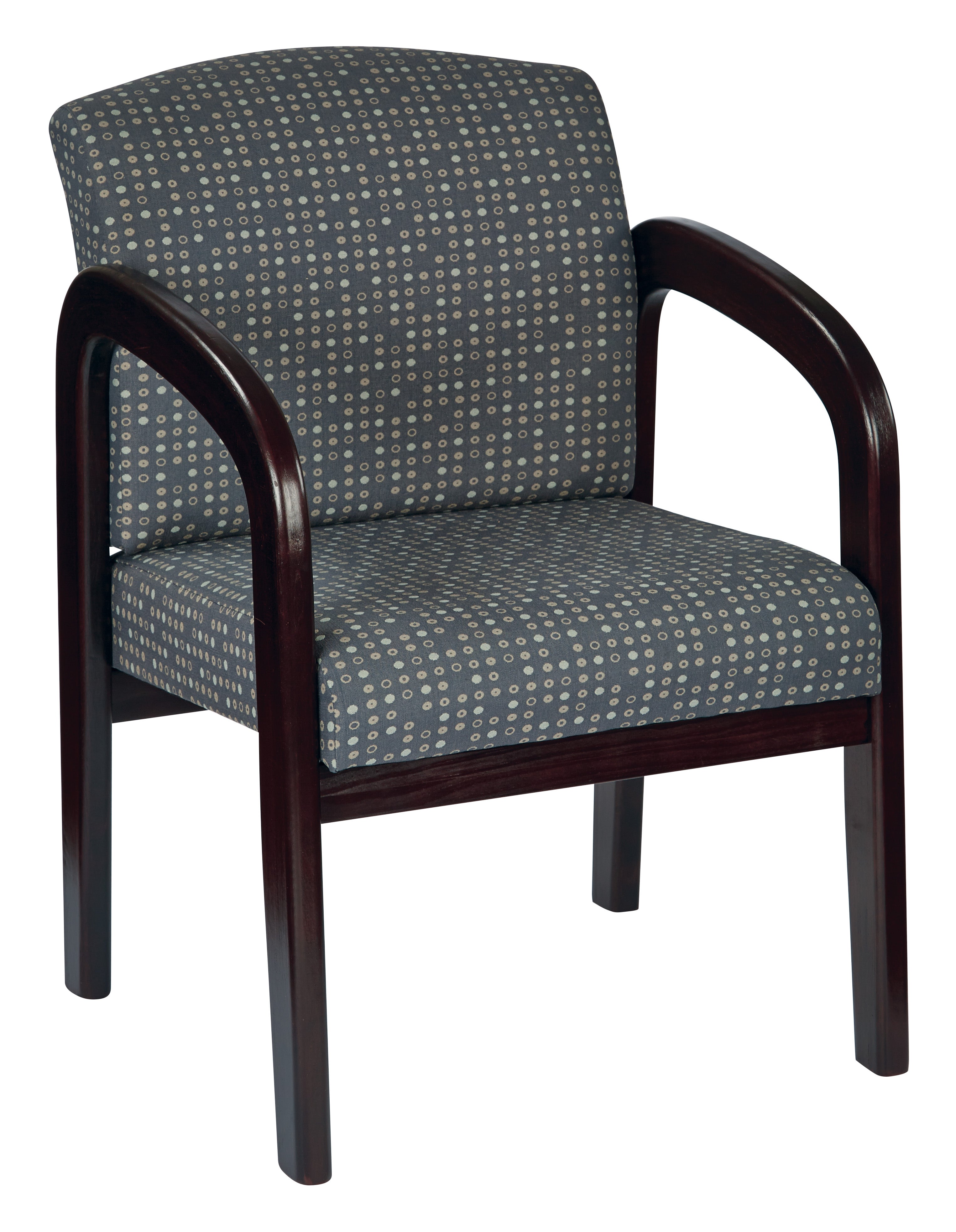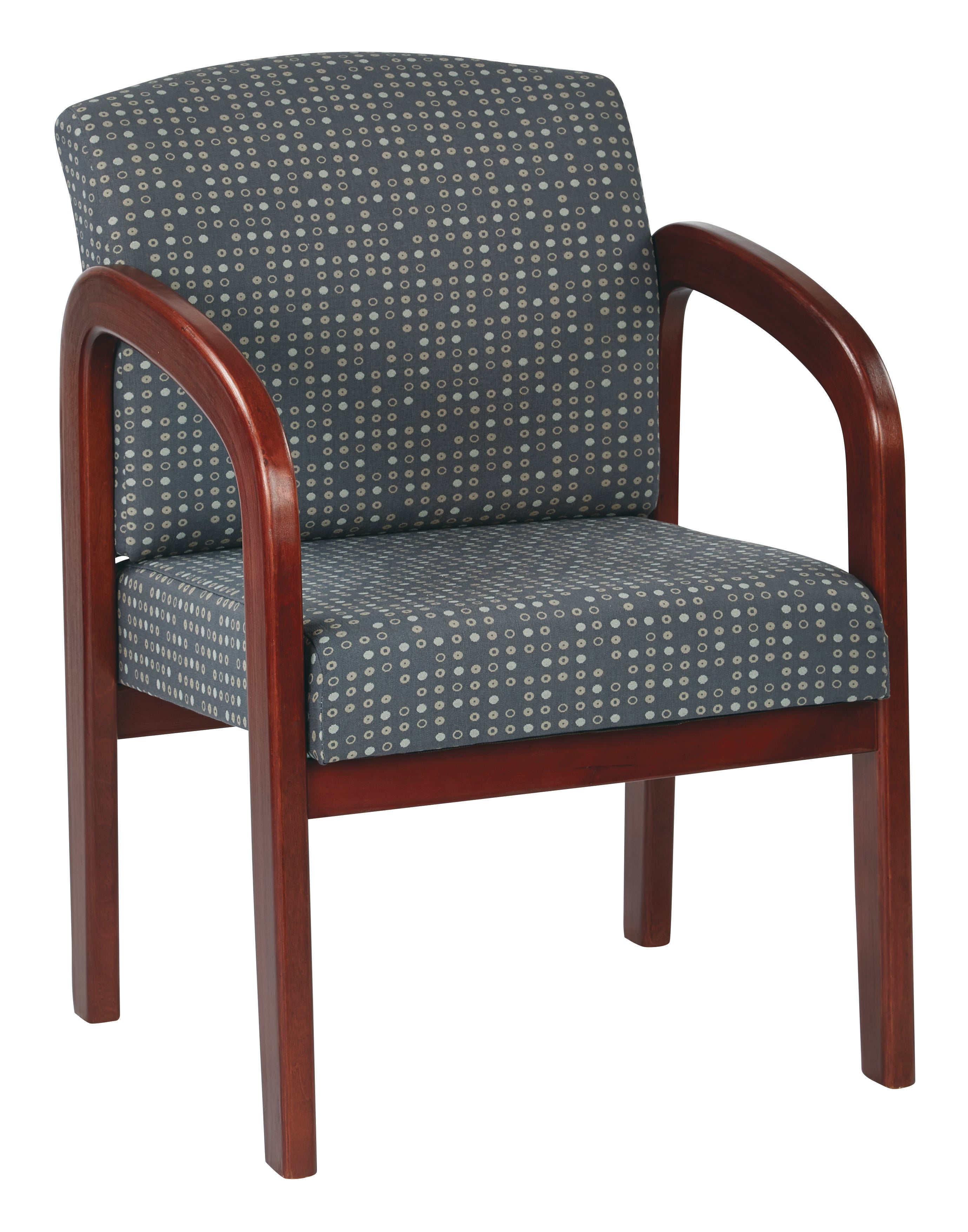 Fabric Mahogany Finish Wood Visitor Chair