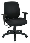 Stay on task with this sleek black office chair designed for productivity. Enjoy the comfort of the thick padded seat and back as you sit back and focus on your work. A ratchet back height adjustment and pneumatic seat height adjustment make it easy for you to customize this chair for your needs. Plus, with Greenguard certification you can rest easy knowing that this chair produces low chemical emissions for improved indoor air quality. Get the job done with the Work Smart Deluxe Task Chair.
