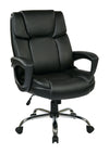 The visual charm of this design is augmented by the sleek chrome fixtures of this “Executive Big Man’s” chair. Fostering comfort and good posture, this chair is expertly crafted with built-in lumbar support and variable height and tilt control. Able to withstand up to 350lbs., this chair is manufactured to last!