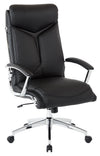 Luxuriously modern. Get head to toe support throughout the work day with this faux leather office chair designed for the modern workplace. Enjoy the comfort of a high back with built in lumbar support and a supportive head rest, along with padded armrests for a relaxed seating experience. The pneumatic seat height adjustment and tilt controls make it easy to customize this chair to your needs, while the chrome accents add a stylish flair. Maximize your productivity with the Work Smart Executive Chair.
