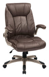The manager's bonded leather chair with padded arms is the attractive, sophisticated seating solution your office has been missing. Sit in luxury against a plush bonded leather back with intelligently designed built-in lumbar support and take full control over pneumatic seat height adjustment and lockable tilt tension. Supremely comfortable padded arms and a heavy duty cocoa coated base with oversized dual wheel carpet casters finish a seat that absolutely means business as a welcome addition to those who seek modern comfort and timeless style.