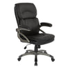 Strap in for a comfortable chair constructed in padded contoured leather with padded flip arms. Adjustable tilt tension and locking tilt control puts you in charge of this chair's functionalities. Built-in lumbar support and one-touch pneumatic height adjustment assures relaxing support during heavy work sessions. The presentation is gleaming for the High Back Leather Executive Manager's Chair from Worksmart.