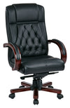 Achieve a distinguished look with this executive high-back arm chair with cherry wood finish that conveniently features dual wheel carpet casters for effortless mobility, allowing you to glide to and from your computer with the greatest of ease. Wrapped in handsome top grain leather, this stately chair is certain to add drama & class to your home or office. Fully outfitted with build in lumbar support, you will enjoy hours of productivity while minimizing fatigue and stress on your lower back. Featuring one-touch pneumatic seat height adjustment and a knee tilt mechanism with adjustable tilt tension, you personalize this ergonomic seating option to your individual comfort level.