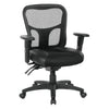 Enjoy comfort and relaxation in this Dual Function Breathable Mesh Chair. Perfect for individuals who spend extended periods of time at their desks, this durable chair is designed to support both your body and mind. While the remarkably strong but lightweight mesh breathable back conforms to your bodies unique contours providing for optimal lumbar support, the high quality foam seat affords for hours of cozy seating, minimizing fatigue and alleviating pressure on the spine. Designed to fit all shapes and sizes, the seat flexes and conforms to your body's micro-movements distributing weight evenly while the one touch pressurized seating adjustments allow you to elevate to the perfect height. Black leather flanks both sides of the seat for a modern look that compliments any business office decor. With three-way customizable arm pads that move forward, backward, and sideways, your arms will always be comfortable whether you are typing or taking notes. Combine all this with the durable nylon base and dual wheel carpet casters for effortless mobility across tile and carpet floors alike, there is no doubt that this manager chair is an office favorite. Add to cart now for online savings on this durable office chair.