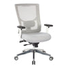 Work in comfort and style in the new ProGrid® High-Back Chair. Perfect for workers who spend extended periods of time at their work stations, this intelligently designed chair provides comfort and support to both your body and mind. The amazingly strong yet lightweight breathable ProGrid® white mesh back conforms to your body’s unique contours with added adjustable lumbar support, and high quality fabric with molded foam affords for hours of cozy seating, minimizing fatigue and alleviating pressure on the spine. Designed to fit all shapes and sizes, the seat conforms to your body's movements while the Ratchet back and one touch pneumatic seating adjustments allow you to elevate to the perfect height. The Deluxe 3-position Locking 2-to-1 synchro Tilt control with seat slider will let you recline with comfort and ease. Complete with 2 way adjustable arms with soft PU pads and a durable heavy duty aluminum base with dual wheel carpet casters that provide for effortless mobility across tile and carpet floors alike. With advanced design and quality construction, this seating option is no doubt an office favorite.
