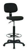 This drafting chair has a stylish look with a modern chrome finish base to match. It is counter height and has a height adjustable footrest and one touch pneumatic seat height adjustment. It also has back height and seat depth adjustment with heavy duty nylon base.
