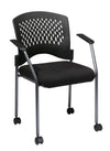 Stunningly simple, yet surprisingly smart, this pro-line ventilated back rolling visitors chair is a compendium of minimalist and contemporary design. The truncated style of the armrest provides for an ultra modern tuber haute aesthetic. Conveniently stackable, this unique seating option features a ventilated wrap around back, a titanium-finish frame for a sleek "modern" look, durable dual-wheel carpet casters for effortless mobility, and dense foam cushion for optimal comfort. Add to cart now and start enjoying this affordable chair for years to come.